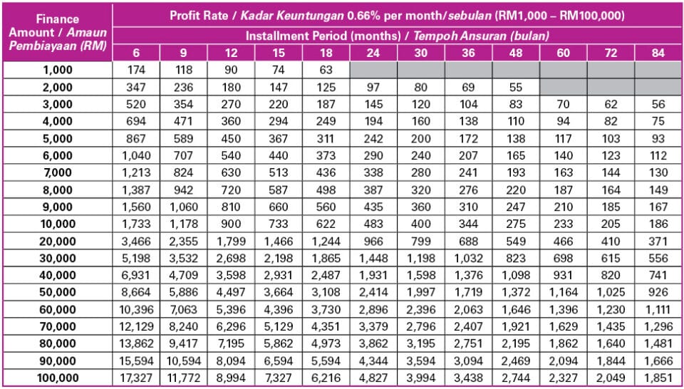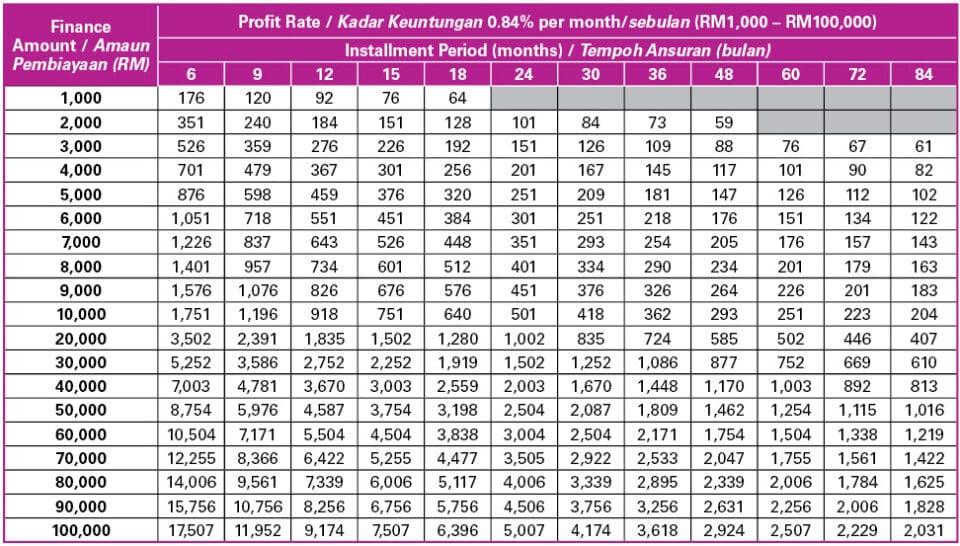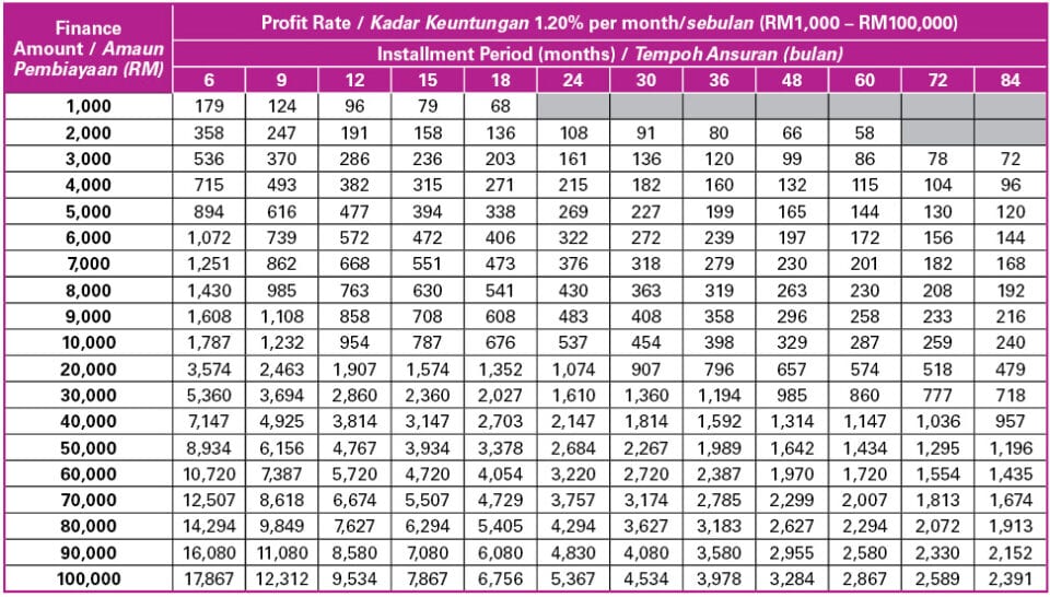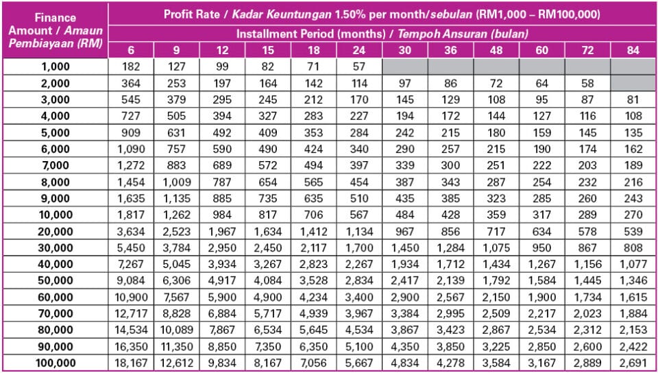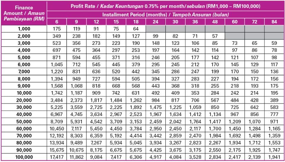 - Jumlah pinjaman: RM1,000 – RM100,000